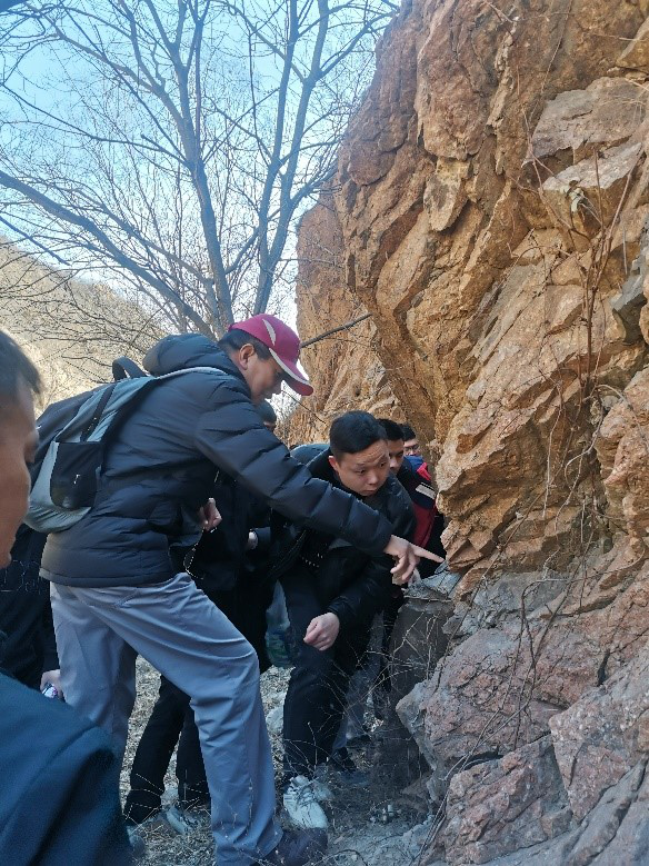稍闻决决流冰谷,乍暖还寒时节,培训班的野外实习却如火如荼。此次野外实践,由中国地质大学(北京)董国臣教授、谢锦程教授、赵志雄老师亲自指导。实践教学点位于北京市昌平区花塔沟。培训班全体学员分为三组,分别有一名老师带队,对野外出露的岩石进行识别描述,分析岩石的结构、构造及成因。